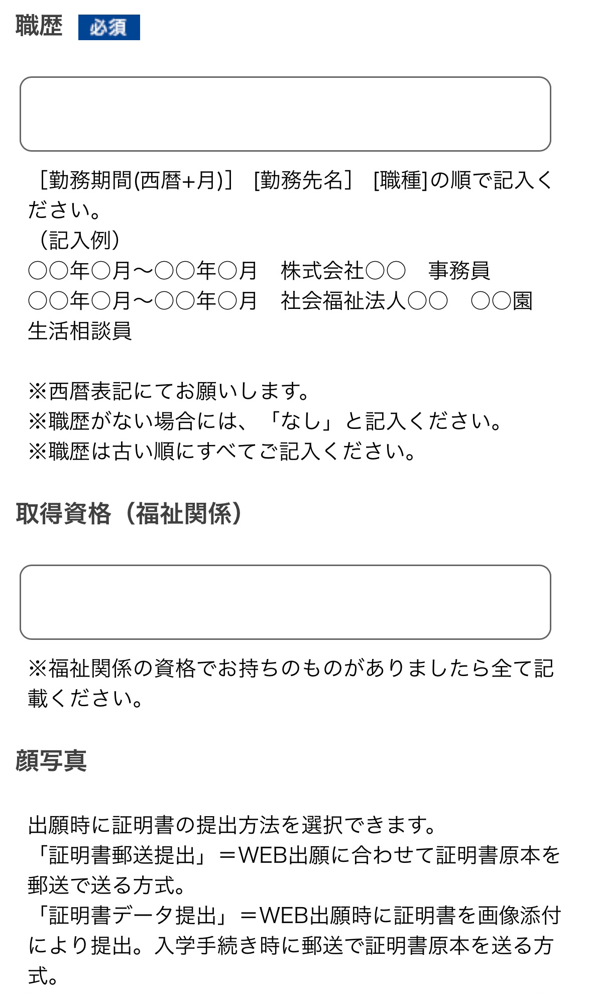 ※黒のインクまたはボールペン(消せるタイプを除く)で明瞭に楷書で自書してください。鉛筆やパソコン・ワープロ・コピーでの提出は認められません。