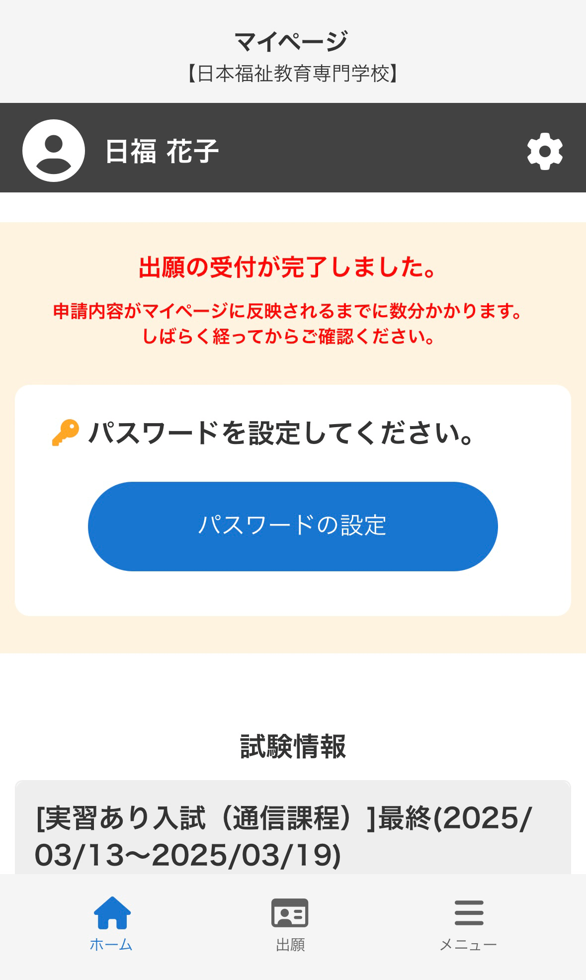 合否結果は、各合格通知日の17:00頃、WEB出願時に