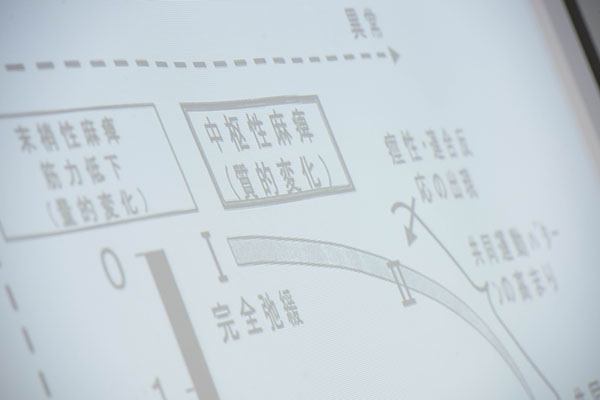 大人の言語障害は、認知症や脳梗塞、交通事故などが原因で起きることが大半です。そのため、言葉にしたくてもできない、表現できないということが起こります。患者さんが自分の思いを言葉にできるよう、リハビリテーションのプログラムを組み立てて機能訓練やリハビリなどを行います。