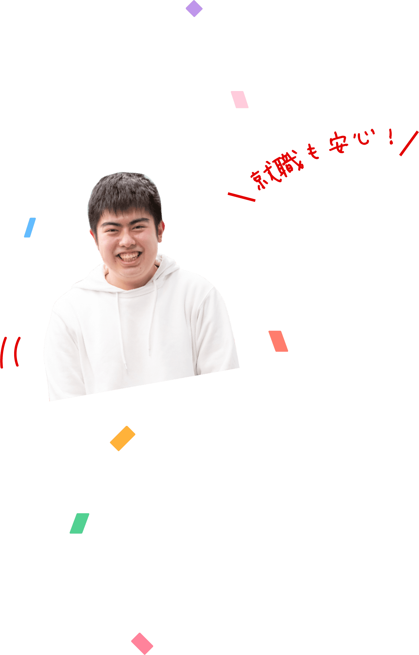カリキュラムを消化していき、あとは自信を持って国家試験本番を迎えることができます。1年生から国家試験対策をスタートするので、2年間のカリキュラムで合格へと導きます。