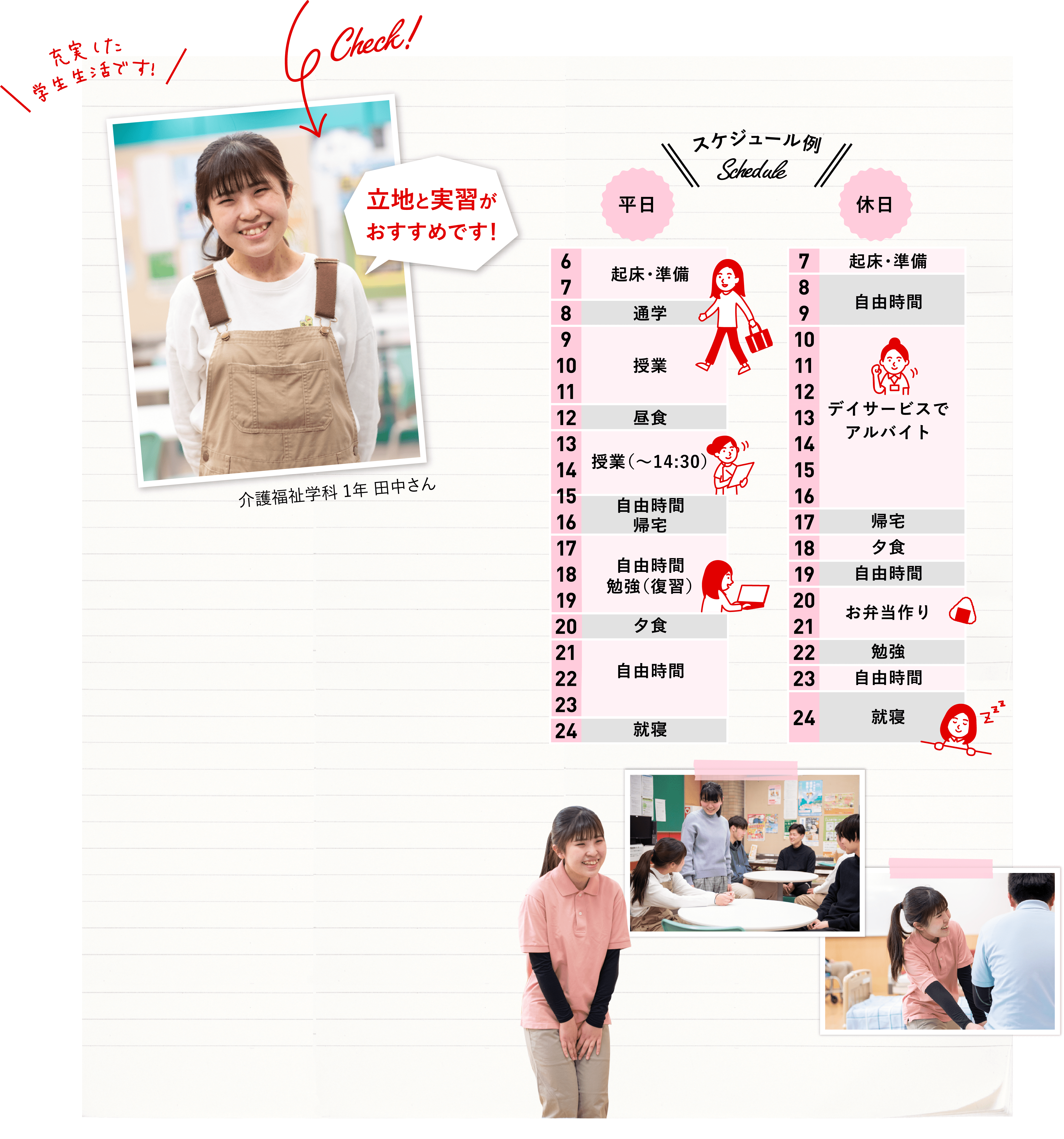 実習先の希望も通りやすいですし、先生たちも優しい人が多く、難しい介護技能も先生のアドバイスで身につけることができます。