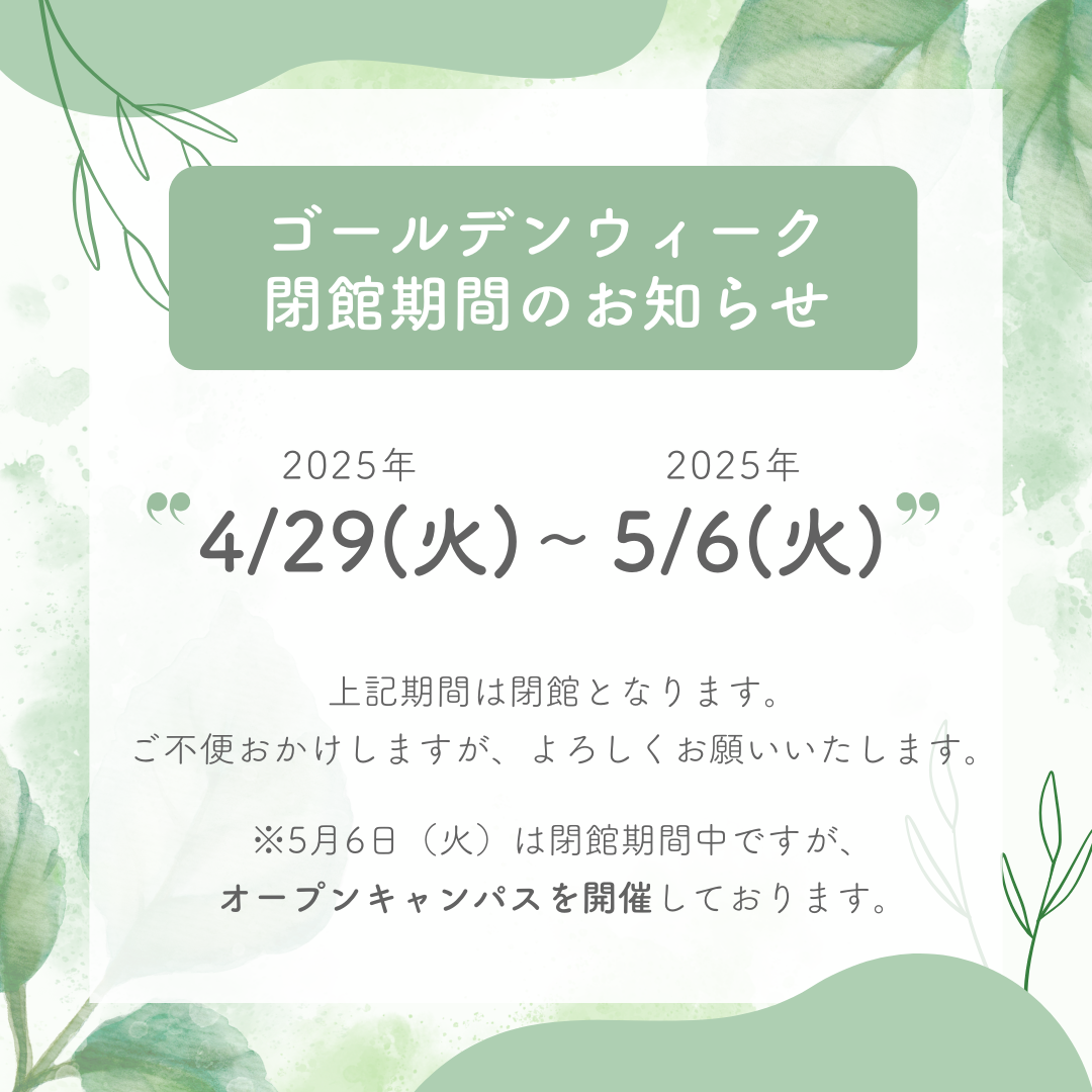 ゴールデンウイークの閉館期間とオープンキャンパスについてのお知らせ|通学部
