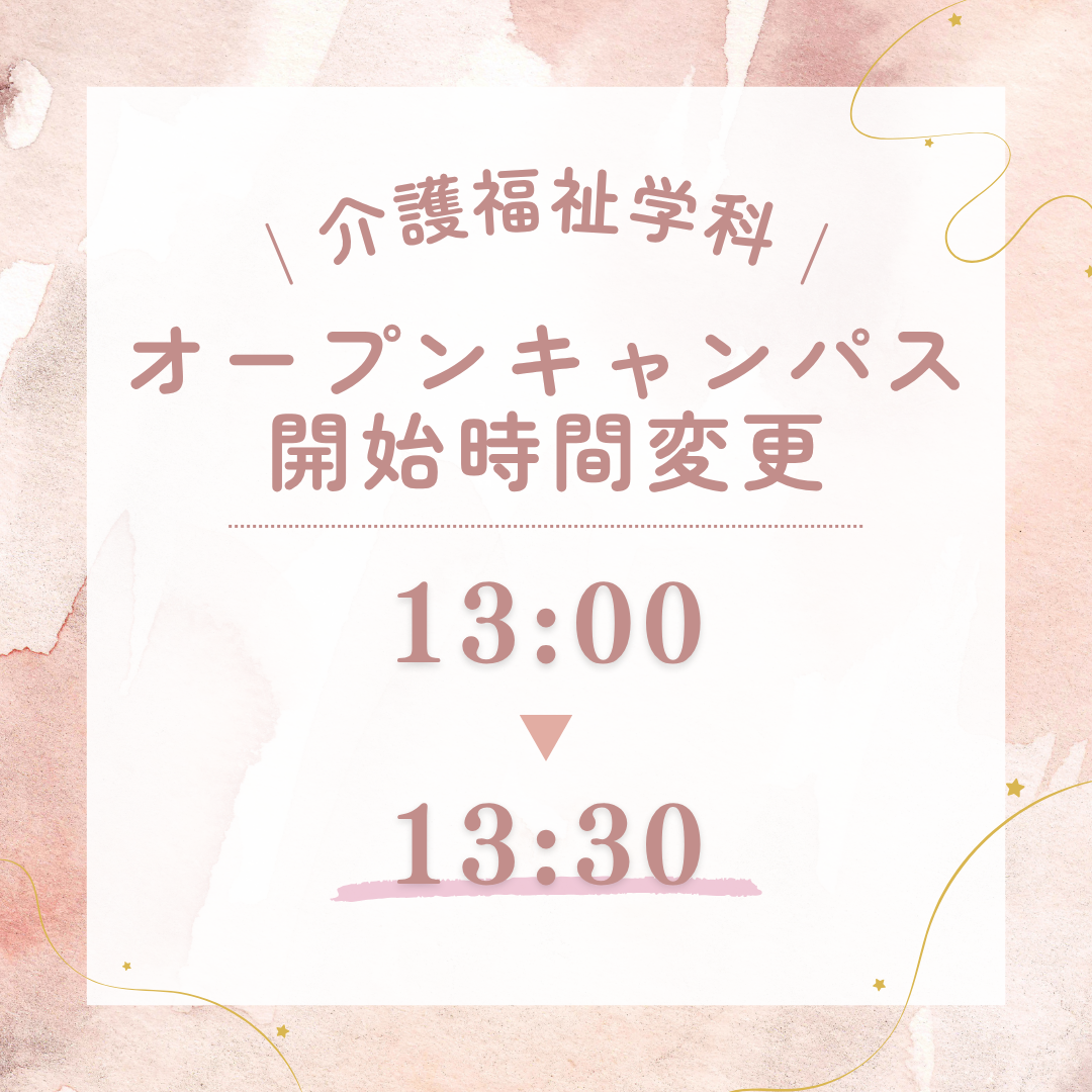 オープンキャンパスの開始時間が13時30分に変わります!|介護福祉学科