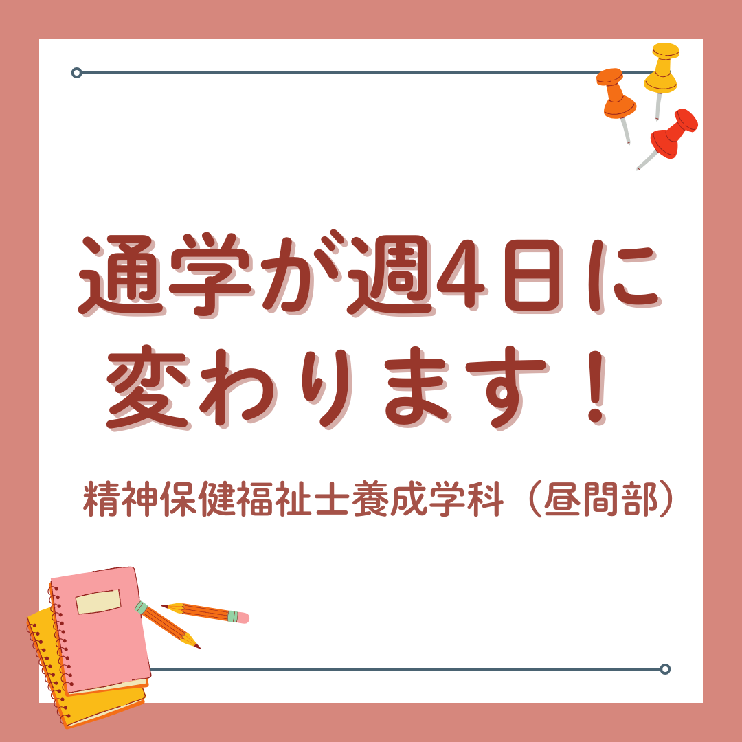 通学が週4日に変わります!|精神保健福祉士養成学科(昼間部)