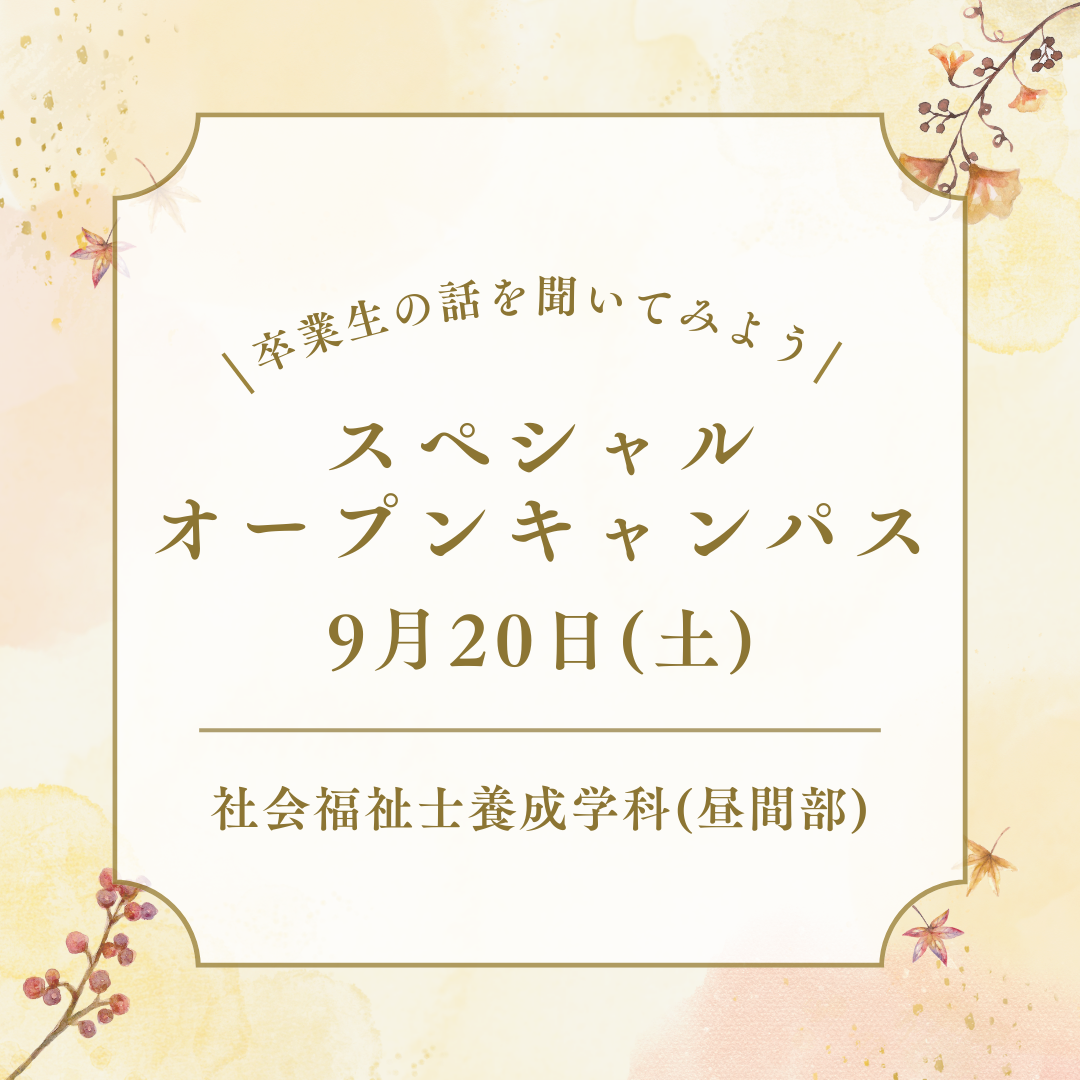 9月20日(土)「卒業生の話を聞いてみよう!」スペシャルオープンキャンパスが開催されます!|社会福祉養成学科(昼間部)