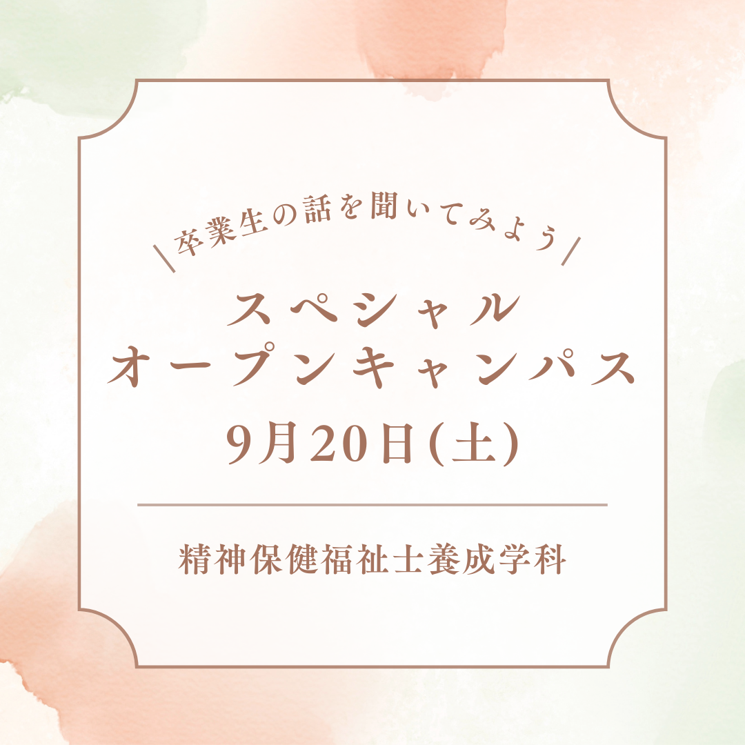 9月20日(土)「卒業生の話を聞いてみよう!」スペシャルオープンキャンパスが開催されます!|精神保健福祉士養成学科(昼間部)