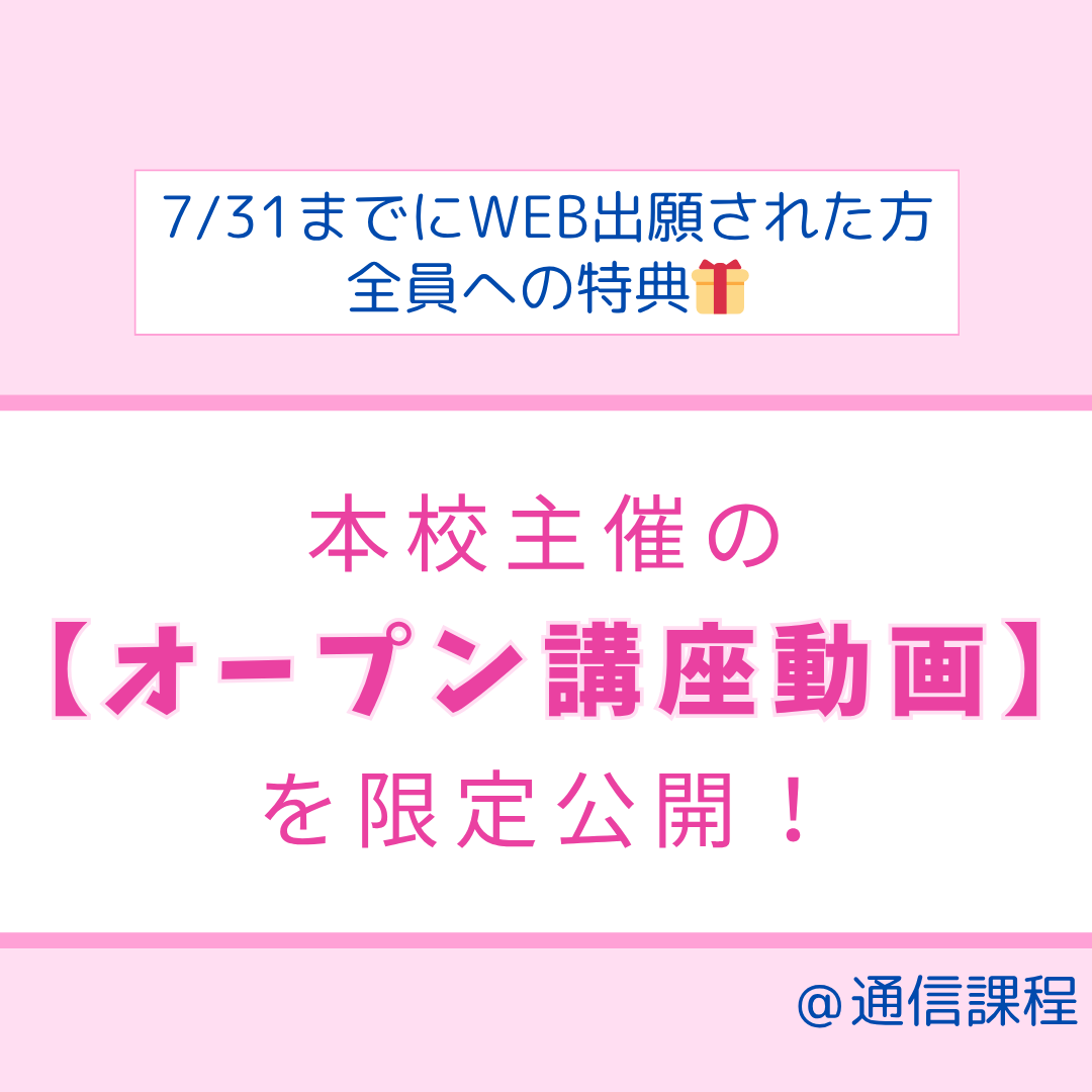〈🎁7/31までにWEB出願をした方全員に🎁〉オープン講座の動画を提供✨ |通信教育事業部