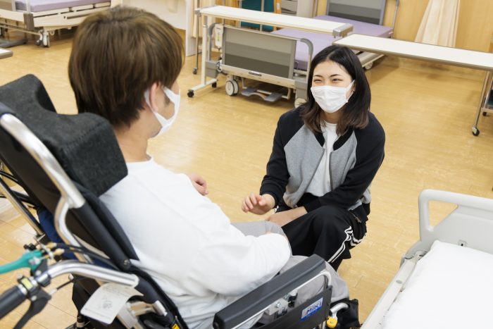 福祉科の高校で教わったことよりも専門的な内容が多いので難しいですが、楽しいしやりがいがあります。