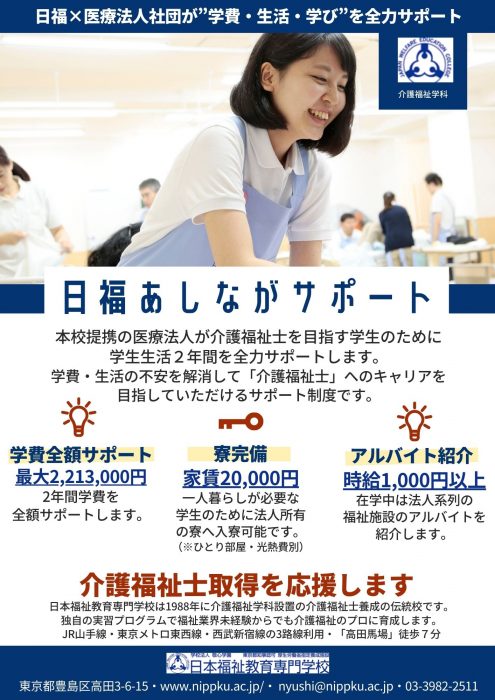 学費全額・生活面サポートを活用して通学できる『日福あしながサポート』のご案内です。