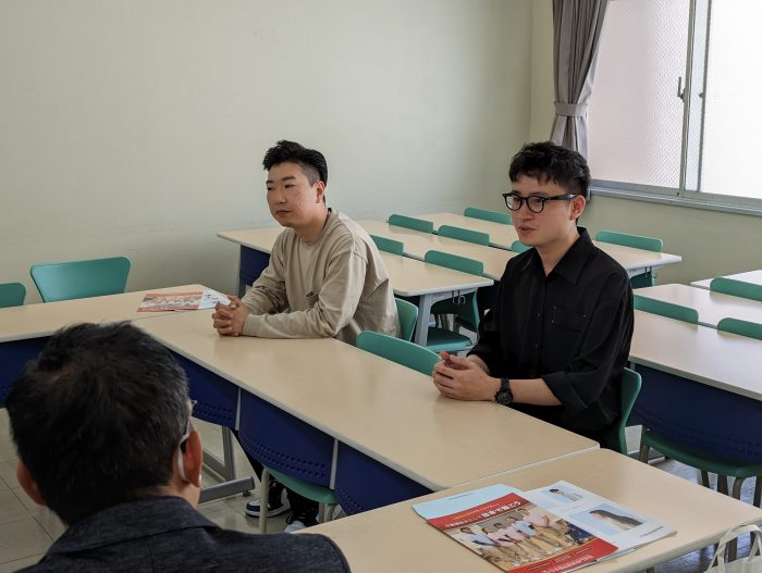 本校で学ぶ中国からの留学生(2年生)と懇談しました
