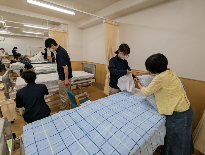 「生活支援技術Ⅰ:ベッドメイキング」の授業をご見学