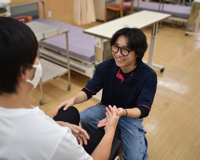 利用者さんとの関わり方や、身体の使い方、現場に近い実習授業や専門用語などを学んでいます。また音楽の授業では楽器の使い方、リズム遊び、ストレッチ法を学んでいます。