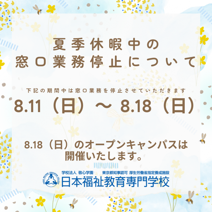 こんにちは!日本福祉教育専門学校入試広報課です。