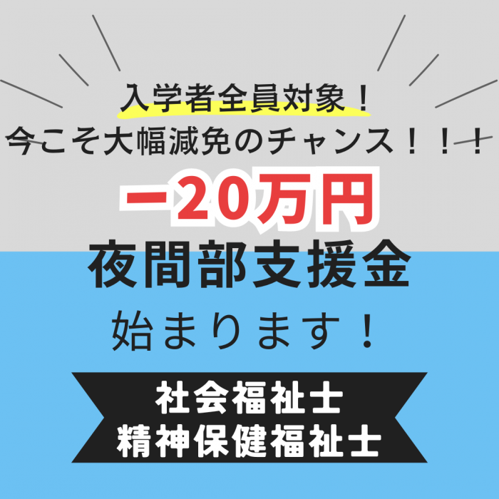 本校では夜間部入学者全員を対象に『夜間部支援金20万円減免』の支援をおこなうことに決まりました!!!