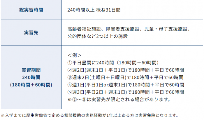 ②働きながらでも通えるきめ細やかな実習配属※社会福祉士養成科ナイトコースのみ