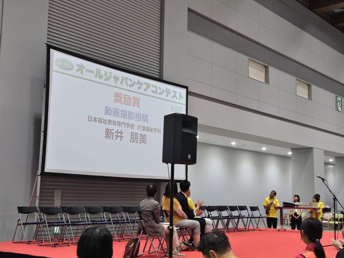 ※オールジャパンケアコンテスト(AJCC)は、「介護の質の向上と地域との繋がりを目指して」という理念のもと、介護に携わる人たちが生き甲斐を感じ、知識や技術の向上を高めるとともに、地域、社会において介護への関心と理解を深めることが必要であると考えて開催するものです。全国から集まった選手(介護従事者)、地域の方、介護サービスご利用者やそのご家族など介護に携わる方々と一緒に、これまでの介護を見つめ直し、これからの介護を考え実践する機会を提供することを目的としています。(公式HPより引用)
