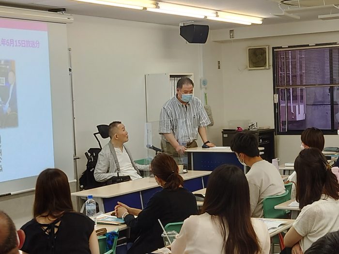 本日の授業では交通事故により重度障害になり、現在合同会社かむしぃを運営している石毛正幸様(代表)よりご講演いただきました。