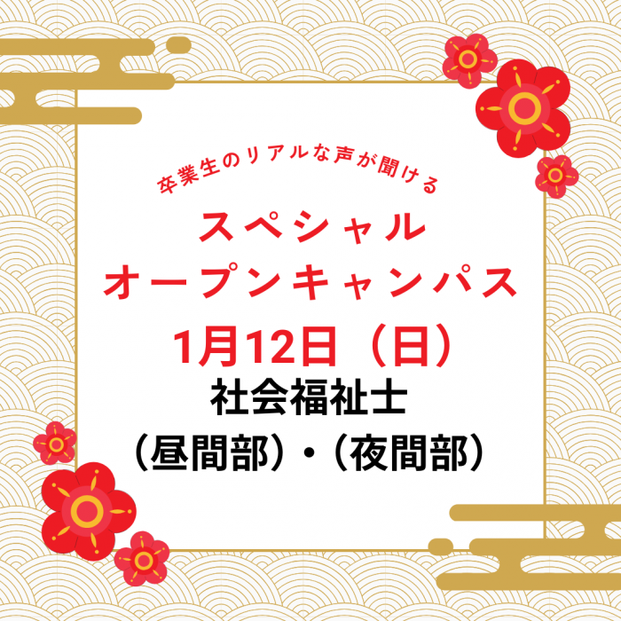 1月12日(日)の社会福祉士・オープンキャンパスでは、「卒業生のリアルな声が聞ける!スペシャルオープンキャンパス」を開催します!