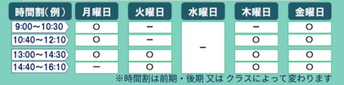 ※時間割は前期・後期 又は クラスによって変わります