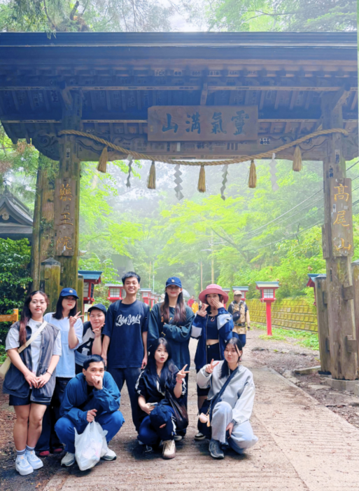 登山道では、時折笑い声を交えながら、励まし合って歩く学生たちの姿が見られ、