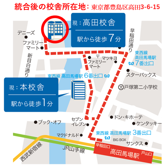 これまで、本校は新宿区高田馬場(本校舎)および豊島区高田(高田校舎)の2拠点にて教育活動を行ってまいりましたが、