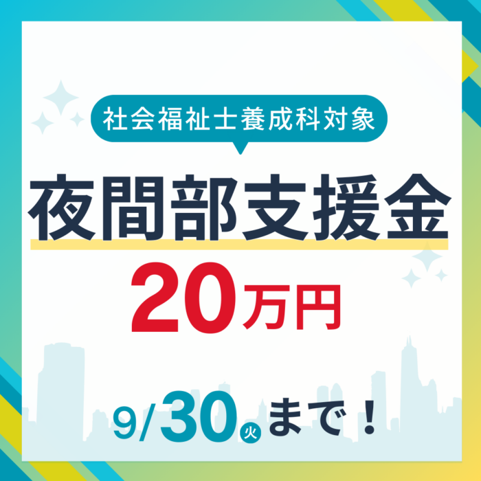 今回は社会福祉士養成科(夜間部)の夜間部支援金についてご案内です。