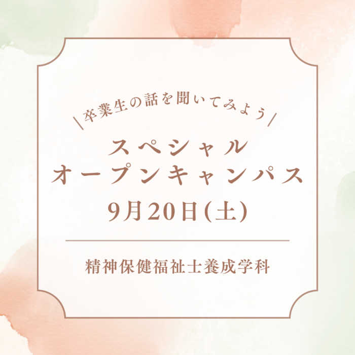 精神保健福祉士取得にご興味あるかたはオープンキャンパスへご参加ください。